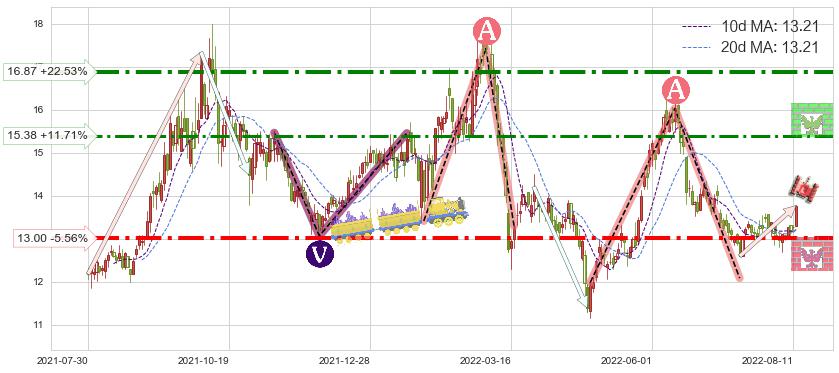 ➣ AI预测: 假定反转如期而至,第❷价格目标位置(2022-08-25, 13.04)