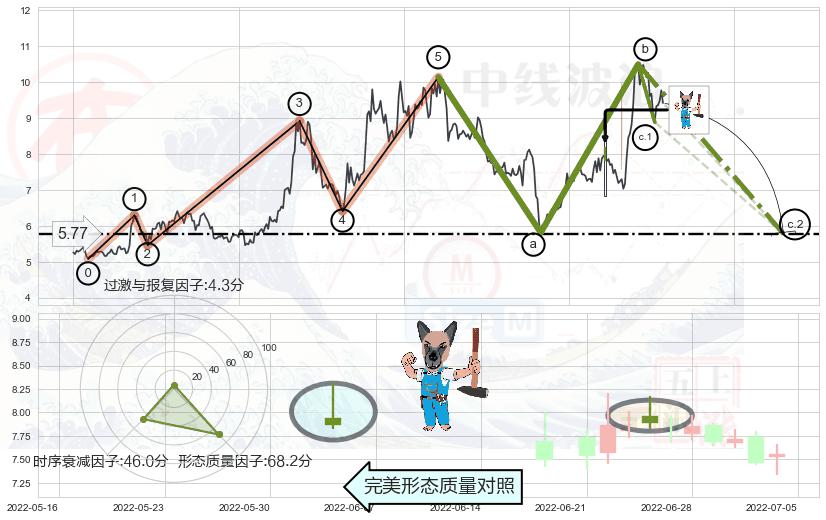 ➢ 下跌身怀六甲 🔜 波浪理论b蓄力回调下跌至c 综合量化分数:46.83 【中性】