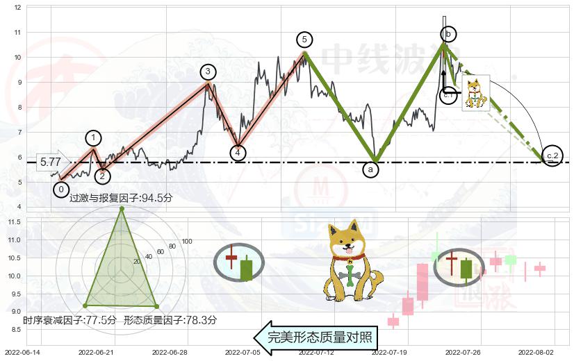 ➣ 下跌镊子线(n形磁铁) + 波浪理论b蓄力回调下跌至c信号叠加后【目标达成率】中等,【看空】信号叠加【存续影响中等】
