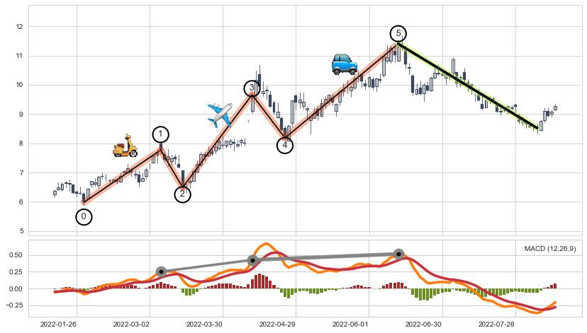 ➣ 波浪理论:猜想达到c点后小回调终止反转上涨 → 上涨 → 【拐点】临近 → 阶段均值回复结束后继续大周期趋势跟踪