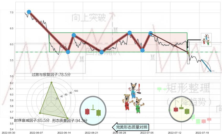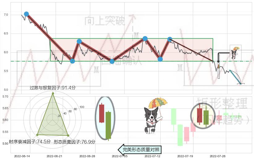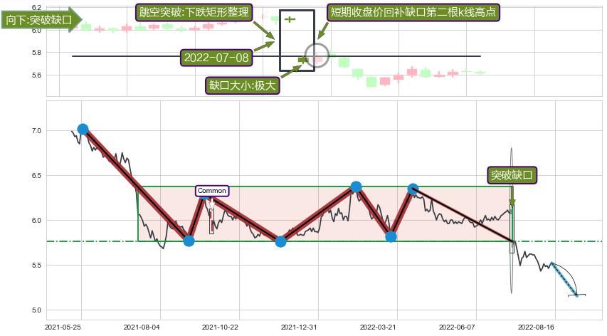 ➢ 【多方力量耗尽】已在2022-07-08突破矩形提供的【支撑】颈线 5.76 →箱形震荡盘整结束