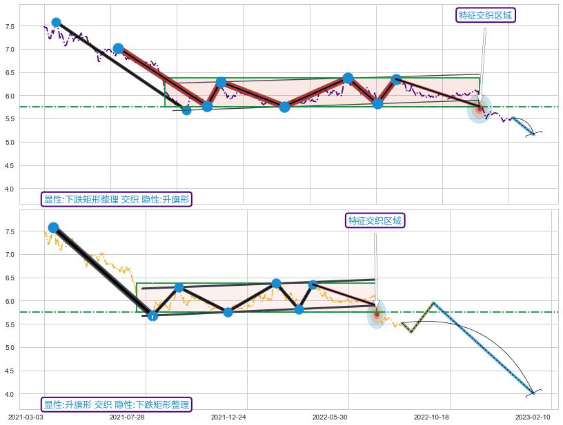 ➢ 升旗形支撑破位转换阻力下跌 🔜 下跌矩形整理支撑破位转换阻力下跌 综合量化分数:33.67 【强烈看空】