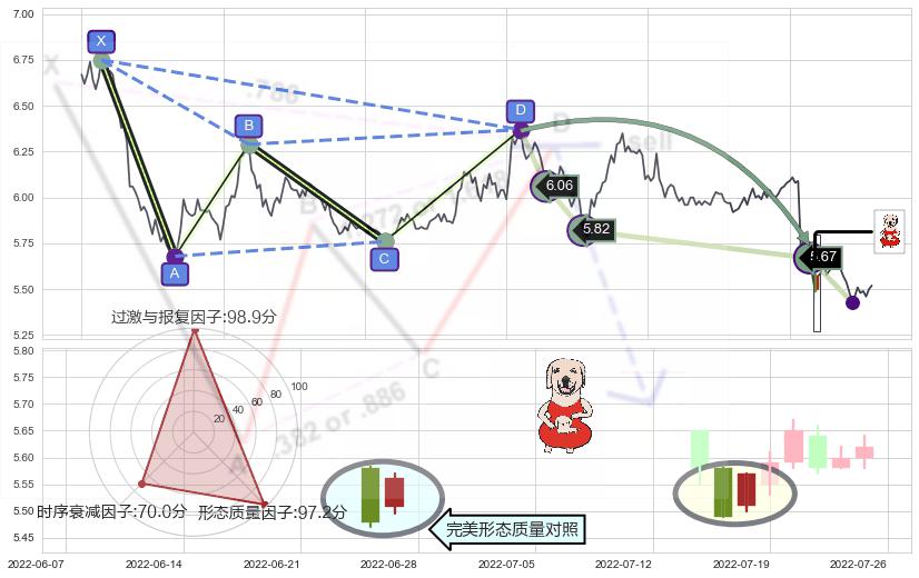 ➢ 🕰 价格走势在2022-06-27至2022-07-04期间形成阴包阳形态,残存影响值:-3.87