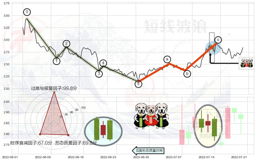 ➢ 🕰 价格走势在2022-07-12至2022-07-14期间形成两黑夹一红,残存影响值:-3.97