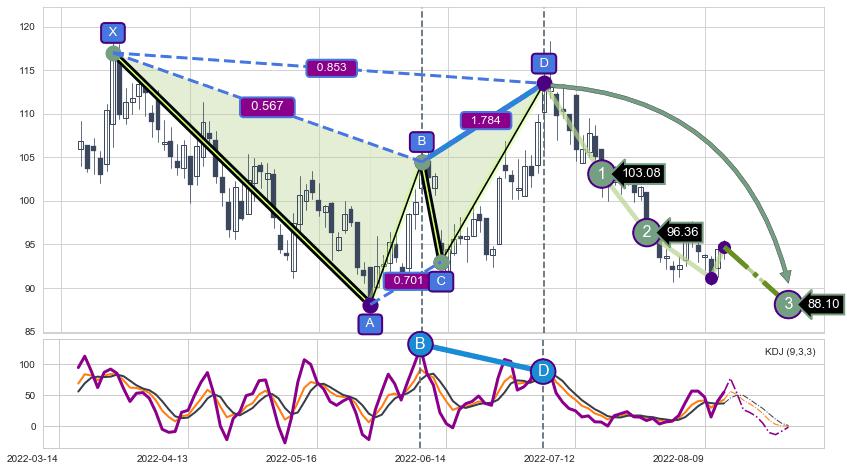 ➢ AI预测: 假定反转继续,第❸价格目标位置(2022-08-26, 88.10)