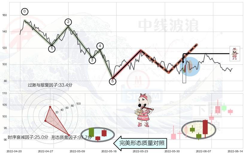 ➢ 🕰 价格走势在2022-06-09至2022-06-13期间形成空方炮,残存影响值:-0.92