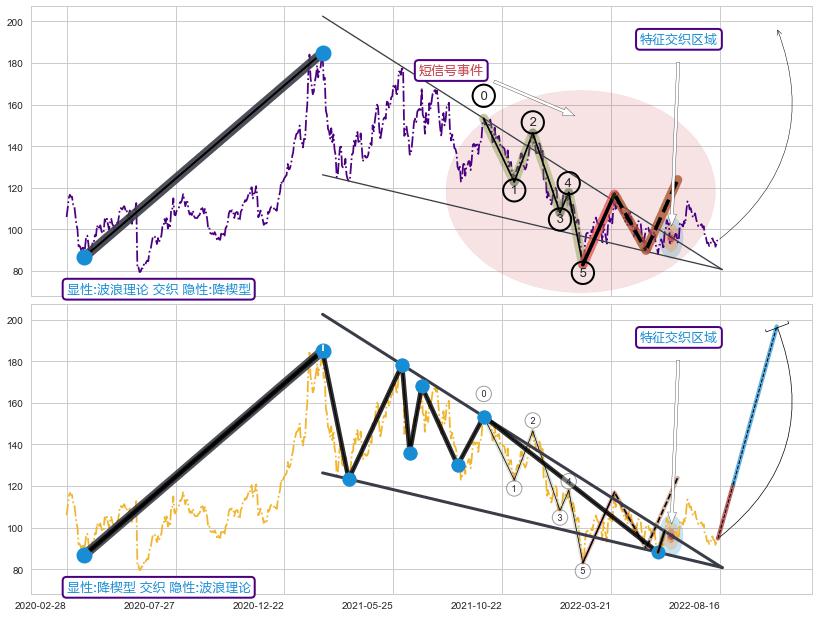 ➢ 波浪理论属【短级别信号事件】降楔型属【长级别信号事件】长短周期组合信号事件, 短长事件长度比33.52%
