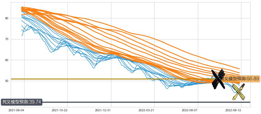 ➣ 40小时均线于(2022-07-08: 50.85)形成【死叉】基于【死叉历史模型】预测死叉后最低波谷价格: 44.64, 死叉后最低价格43.13,已经下跌超出预测最低波谷价格, 预期反弹