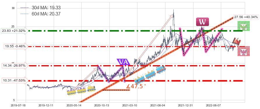 ♘ 阻力价格位23.83,可信任强度91.81%,距离最后交易2022-08-12形成的收盘价格19.64相差 +21.32%