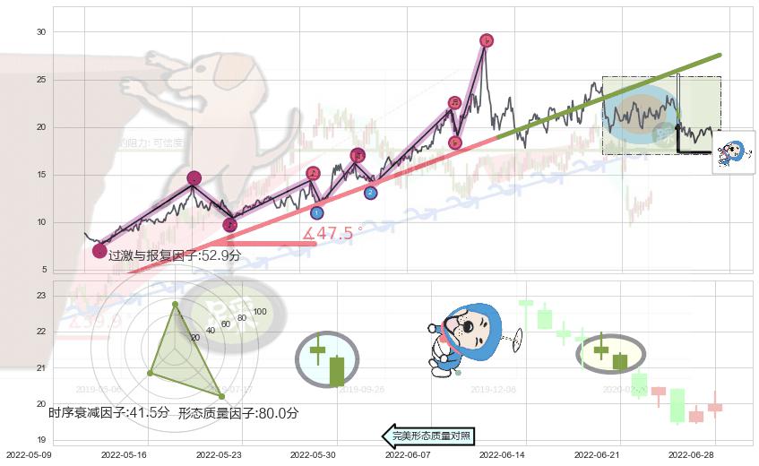 ➢ 🕰 价格走势在2022-06-23至2022-06-24期间形成吊颈线(上吊线),残存影响值:-3.60