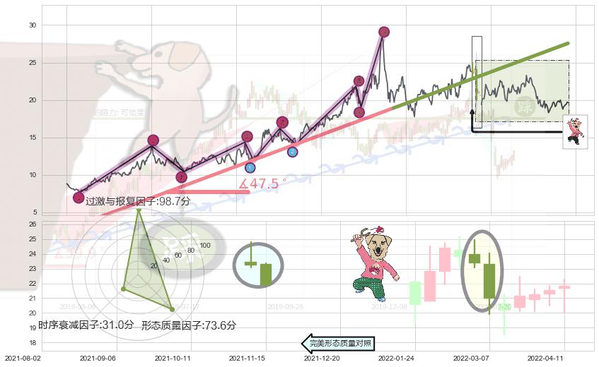 从2020-04-01至2021-10-12,共包含370个交易日,阶段股价上涨114.80%,阶段股价变动位移路程比: 1 : 7,上涨趋势角度: 47.5