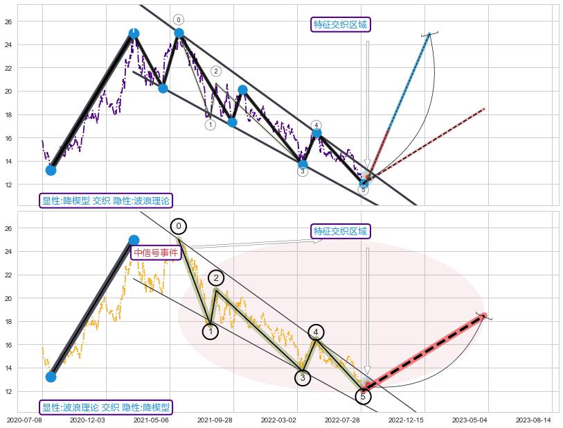 ➢ 降楔型与波浪理论信号事件周期长度级别相同,同周期信号事件