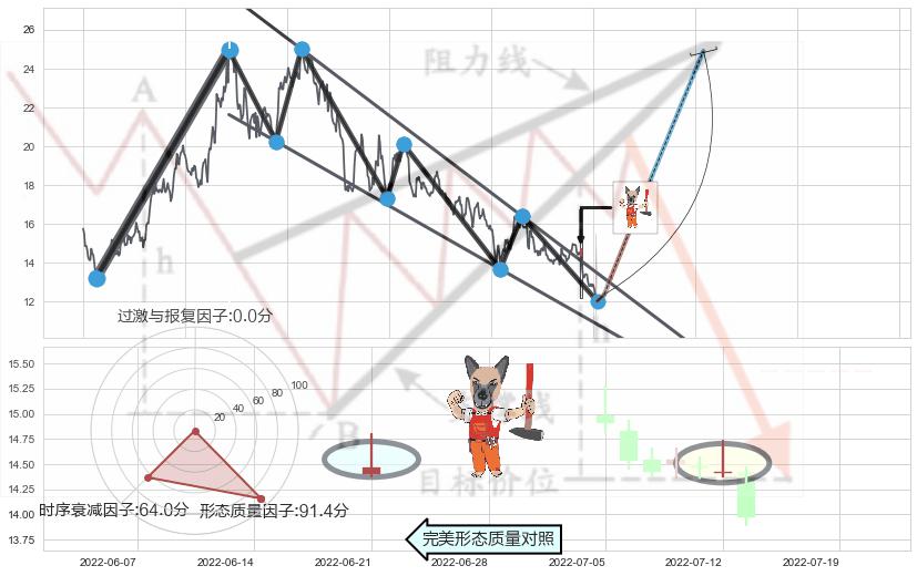♘ 阻力价格位17.15,可信任强度94.08%,距离最后交易2022-08-12形成的收盘价格12.37相差 +38.62%