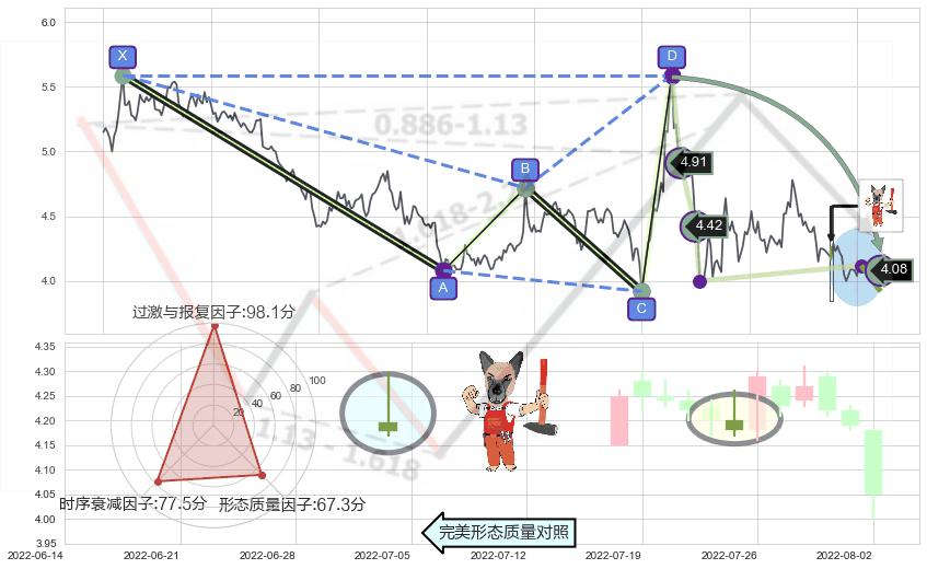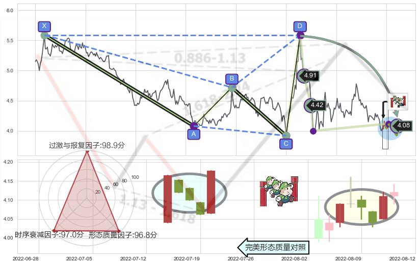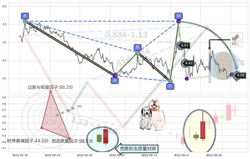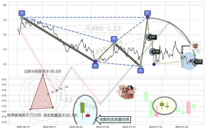 ➢ 曙光初现形态 🔜 谐波鲨鱼临近目标❸支撑上涨 综合量化分数:53.59 【中性】