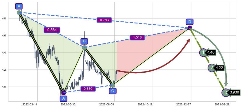 ➣ 未完成【伽利】形态起点X: 2022-02-08, 已到达C点: 2022-08-05, 预测最终D点: 2022-12-23, 共223交易日