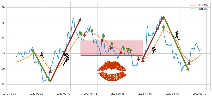 2022-01-17至2022-06-13 慢线与快线呈空头排列, 慢线与快线接触少,无缠绕