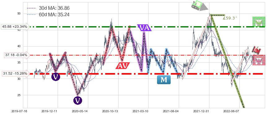 ♘ 支撑价格位37.18,可信任强度43.36%,距离最后交易2022-08-12形成的收盘价格37.20相差 -0.04%