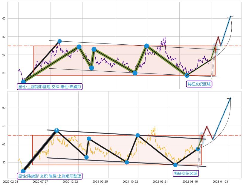 ➣ 上涨矩形整理:猜想临近关键阻力位突破点 → 临近拐点上涨 → 机会信号 → 大趋势均值回复