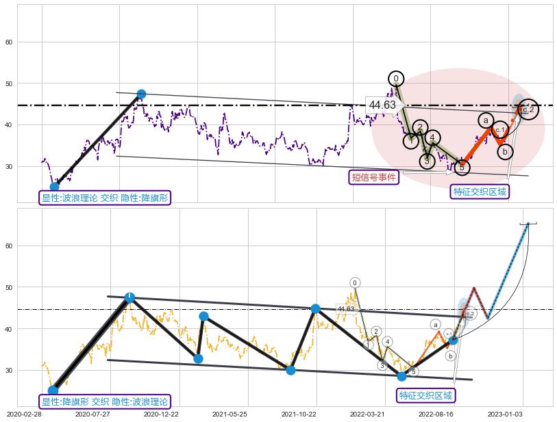 ➢ 波浪理论属【短级别信号事件】降旗形属【长级别信号事件】长短周期组合信号事件, 短长事件长度比24.53%