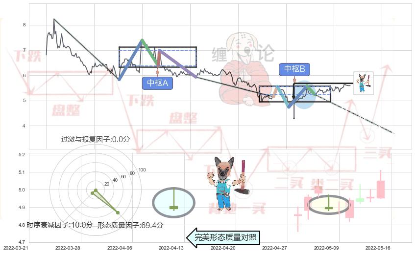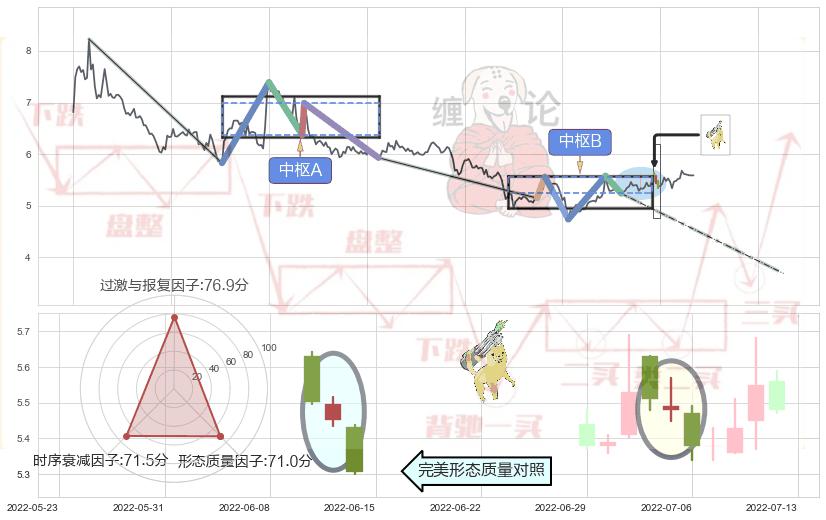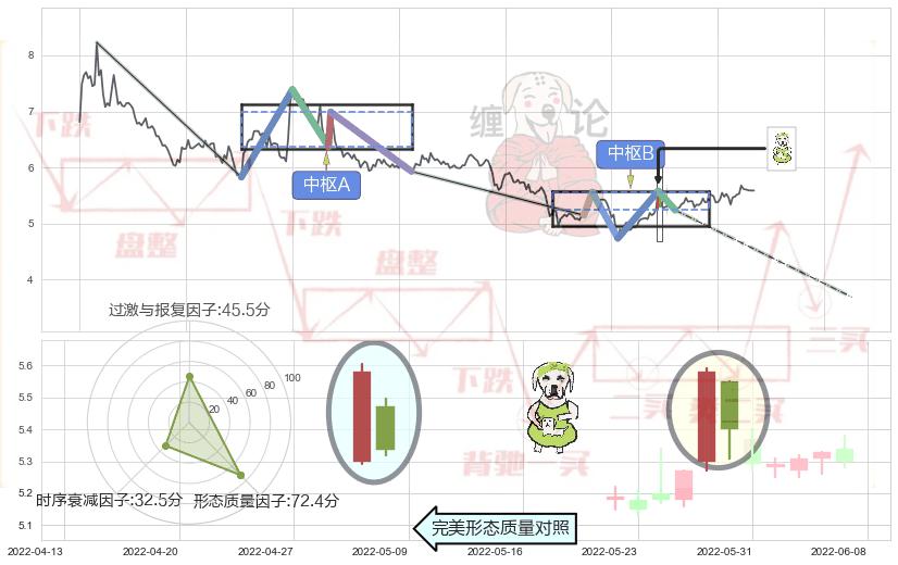 ➢ 下跌身怀六甲 🔜 缠论中枢点破位中枢B支撑下拉 综合量化分数:44.70 【偏空】