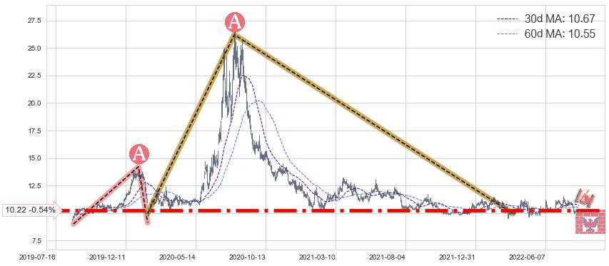 2022-05-24: 第一支撑位10.22有效抑制了下跌浪,成功阻止了价格的继续下跌。
