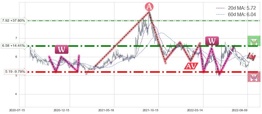 ♘ 阻力价格位6.58,可信任强度91.00%,距离最后交易2022-08-12形成的收盘价格5.75相差 +14.41%
