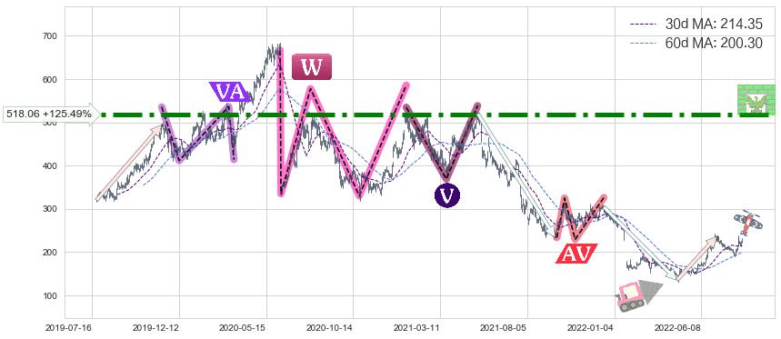 ♘ 阻力价格位518.06,可信任强度98.99%,距离最后交易2022-08-12形成的收盘价格229.75相差 +125.49%
