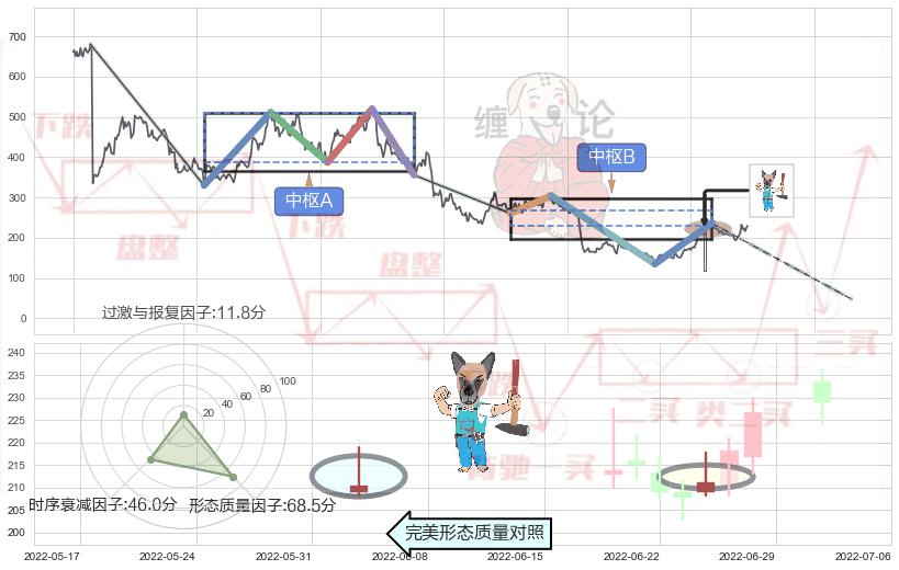 ➢ 下跌孤独十字星 🔜 缠论中枢点破位中枢B支撑下拉 综合量化分数:47.07 【中性】