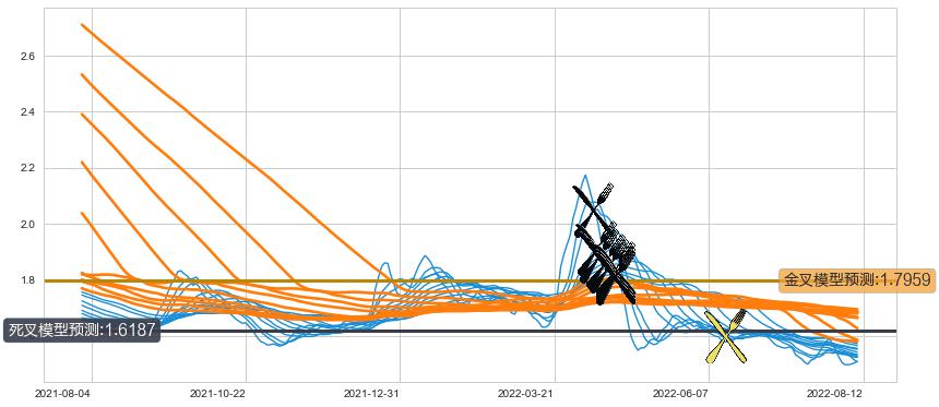 ➢ 34小时均线于(2022-04-15: 1.8432)形成【死叉】基于【死叉历史模型】预测死叉后最低波谷价格: 1.6385, 死叉后最低价格1.4500,已经下跌超出预测最低波谷价格, 预期反弹