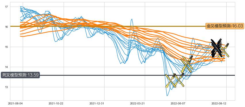 ➢ 40小时均线于(2022-07-28: 14.91)形成【死叉】基于【死叉历史模型】预测死叉后最低波谷价格: 13.55, 死叉后最低价格13.92,尚未达到预测最低波谷价格, 预期继续下跌