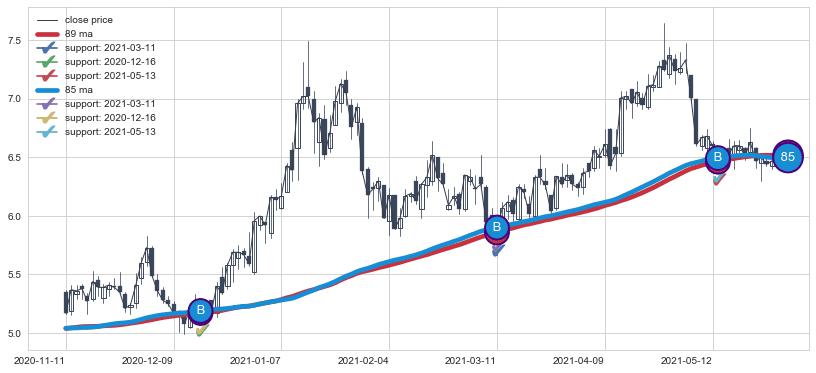 👍 尚未达到多条均线预测的最高波峰价格的平均值, 预期继续上涨