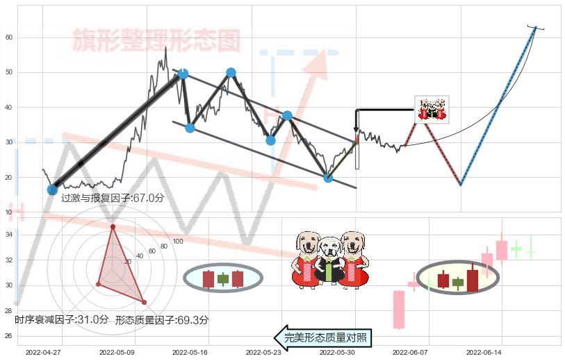 ➢ 【买1】: 激进型 买点 →(2022-06-08: 29.77 )形成突破降⚑旗形【整理】形态