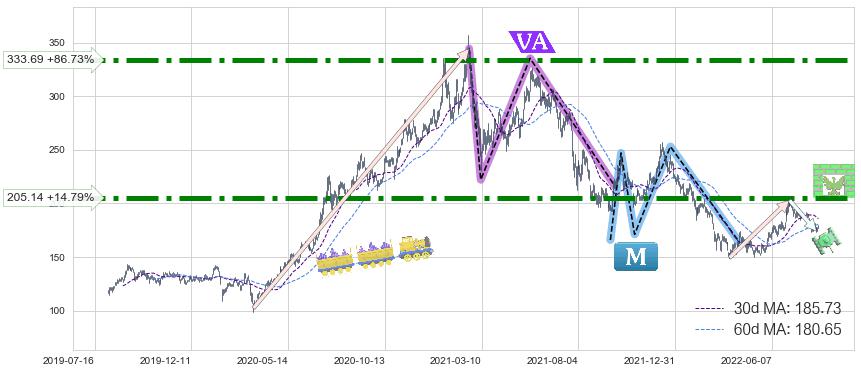 ♘ 阻力价格位205.14,可信任强度86.03%,距离最后交易2022-08-12形成的收盘价格178.70相差 +14.79%