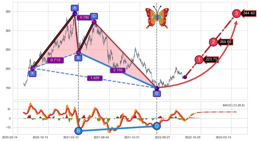 ➣ 已完成【蝴蝶】形态起点X: 2020-07-24, 终点D: 2022-03-29, 共408交易日
