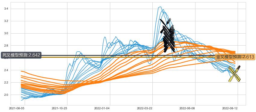 ➣ 13小时均线于(2022-08-11: 2.345)形成【金叉】基于【金叉历史模型】预测金叉后最高波峰价格: 2.606, 金叉后最高价格2.350,尚未达到预测最高波峰价格, 预期继续上涨