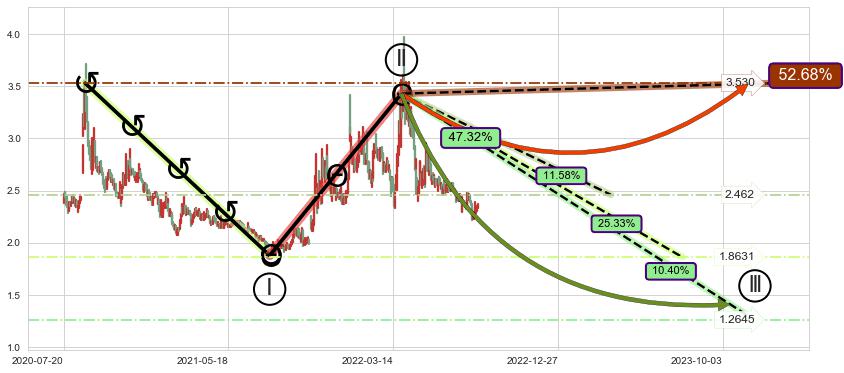 ➢ 循环浪继续向下【最高】位置(2023-03-27, 2.462),匹配聚类样本比例24.48%, 可能性概率11.58%