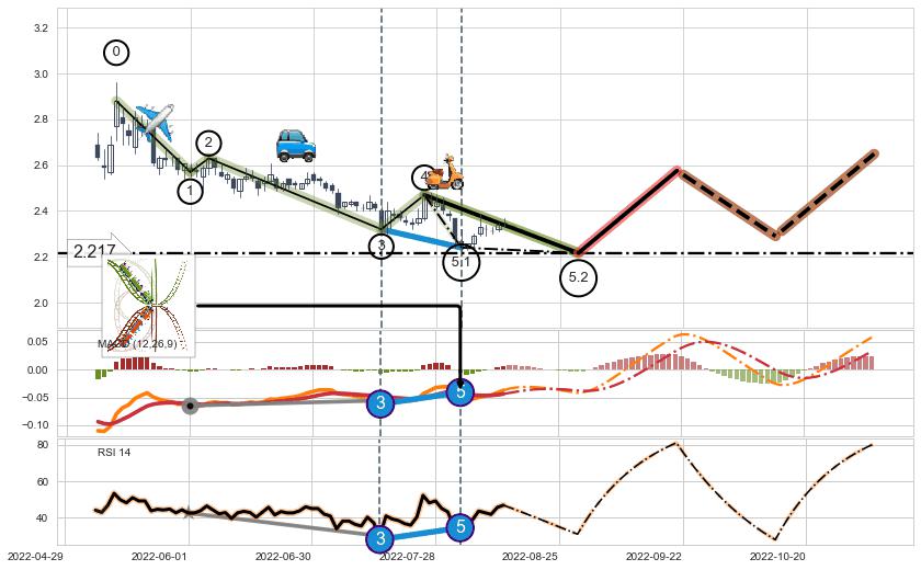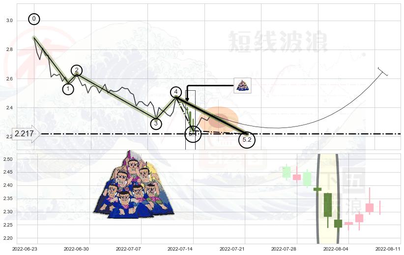 ➣ 5.1: 预测当前第5浪位置(2022-08-03, 2.240),仍然有下跌空间