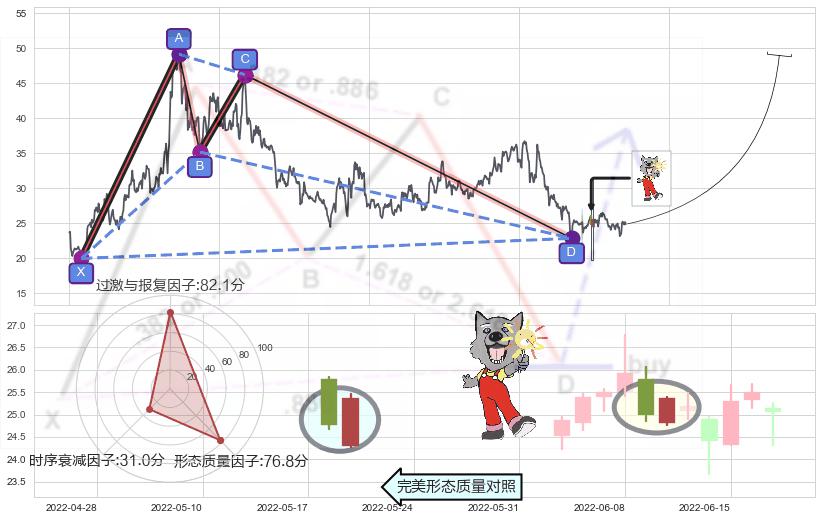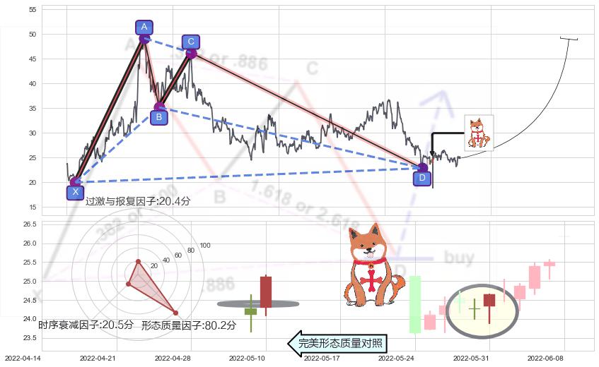 ➢ 曙光初现形态 🔜 谐波蝙蝠d拐点上涨支撑 综合量化分数:54.86 【偏多】