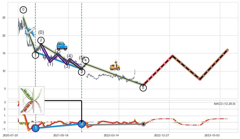 ➣ 波浪理论:猜想止跌 → 上涨 →【拐点】浪5已完成 → 大趋势均值回复