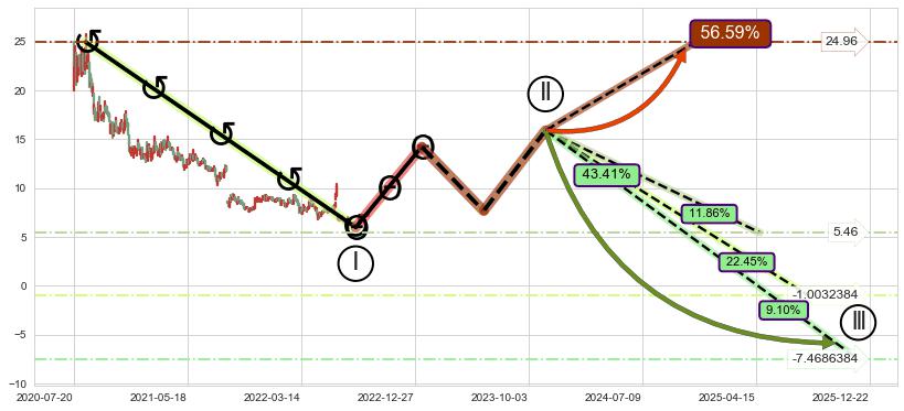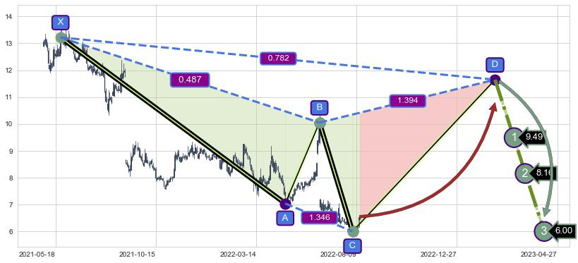 ➣ D点拟合预测价格11.65,距离最后交易收盘价格6.55相差 +77.80%