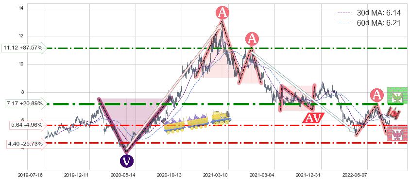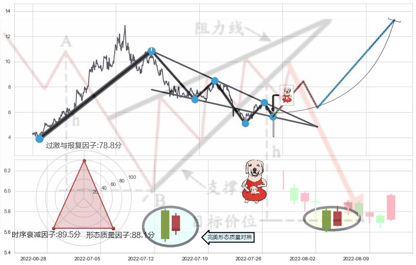 ♘ 阻力价格位7.17,可信任强度86.18%,距离最后交易2022-08-12形成的收盘价格5.93相差 +20.89%