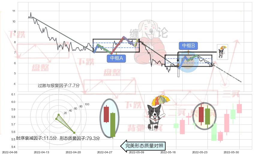 ➣ 看跌(高位倒锤头)流星线 + 缠论中枢点破位中枢B支撑下拉信号叠加后【目标达成率】中等,【看空】信号叠加【存续影响中等】