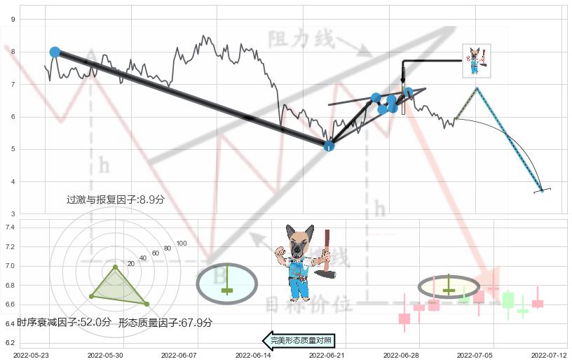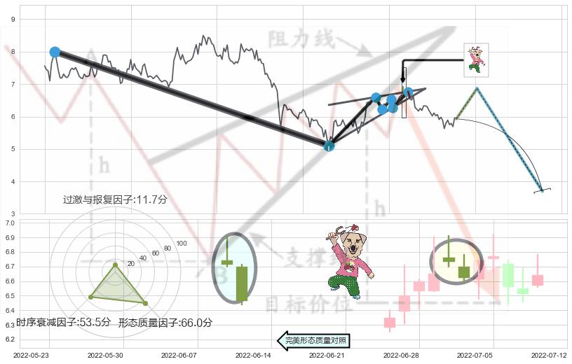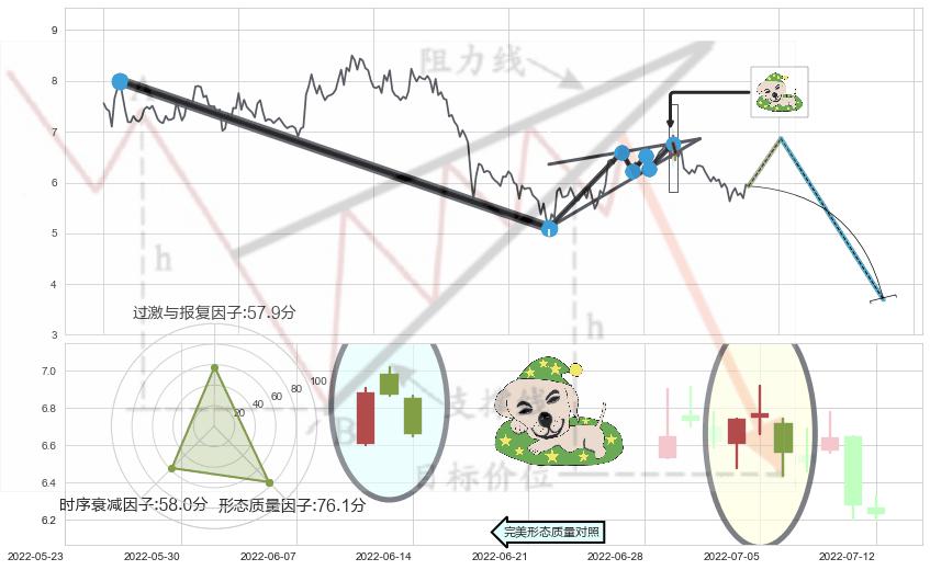 ➢ 【卖1】: 激进型 卖点→(2022-07-06: 6.58 )形成突破升🚩楔型【整理】形态