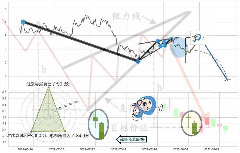 ♘ 支撑价格位5.64,可信任强度69.67%,距离最后交易2022-08-12形成的收盘价格5.93相差 -4.96%