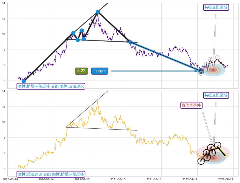 ➢ 波浪理论属【短级别信号事件】扩散三角反转属【长级别信号事件】长短周期组合信号事件, 短长事件长度比22.82%
