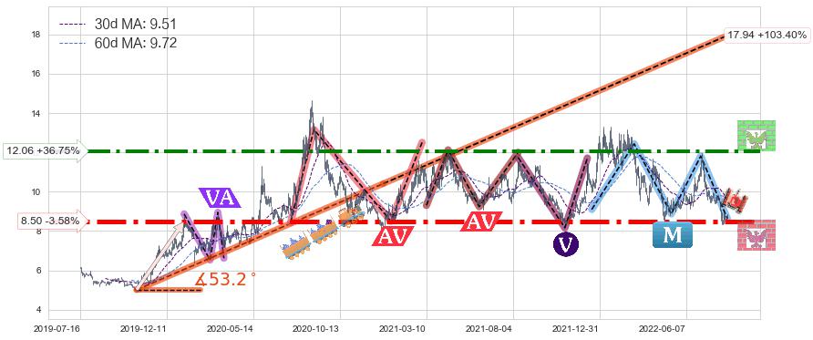 ♘ 阻力价格位12.06,可信任强度79.99%,距离最后交易2022-08-12形成的收盘价格8.82相差 +36.75%