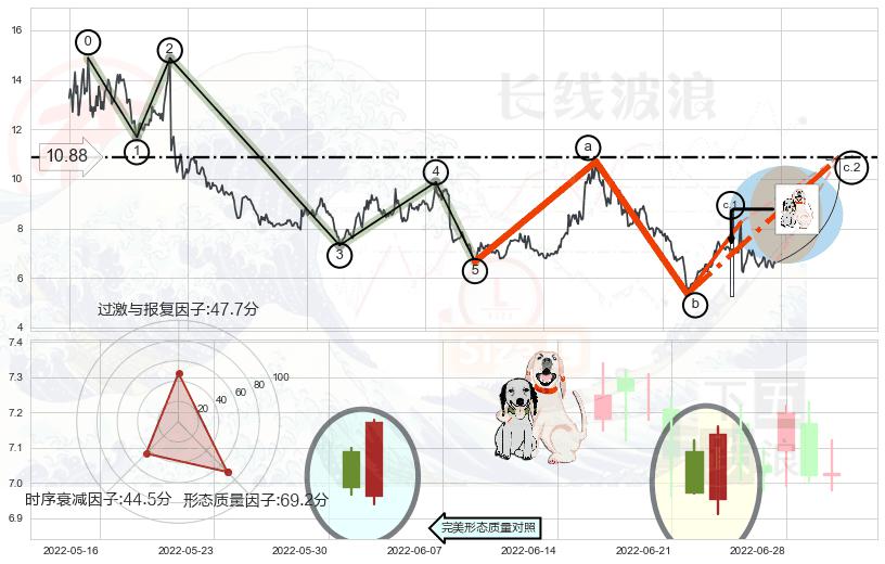 ➢ 锤头线(锤子线) 🔜 波浪理论临近C点后续突破C上涨 综合量化分数:54.16 【偏多】