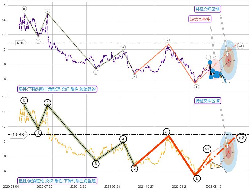 ➢ 下降对称三角整理属【短级别信号事件】波浪理论属【长级别信号事件】长短周期组合信号事件, 短长事件长度比5.17%