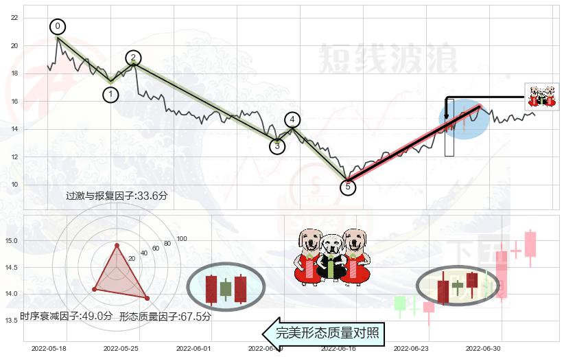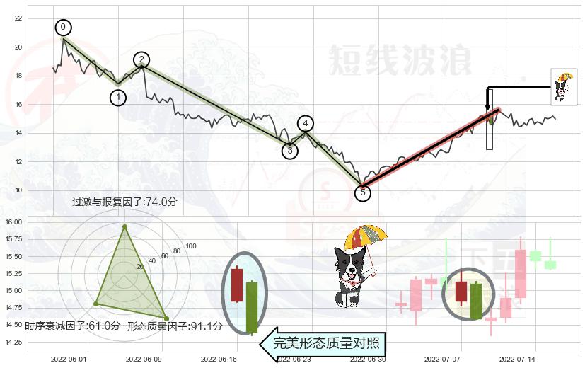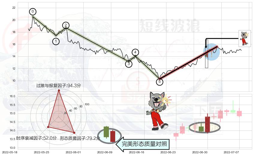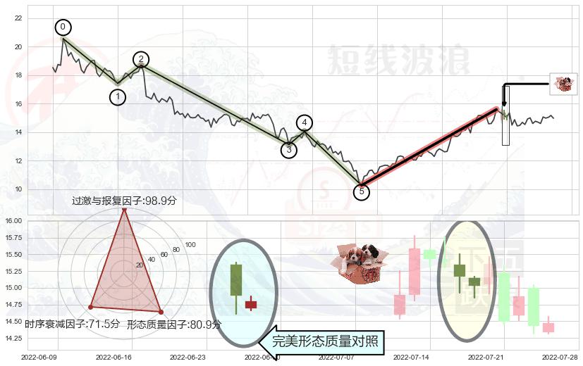 ➢ 🕰 价格走势在2022-07-15至2022-07-18期间形成射击之星形态,残存影响值:-6.92
