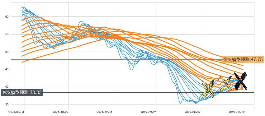 ➣ 40小时均线于(2022-08-09: 41.56)形成【死叉】基于【死叉历史模型】预测死叉后最低波谷价格: 37.52, 死叉后最低价格40.70,尚未达到预测最低波谷价格, 预期继续下跌